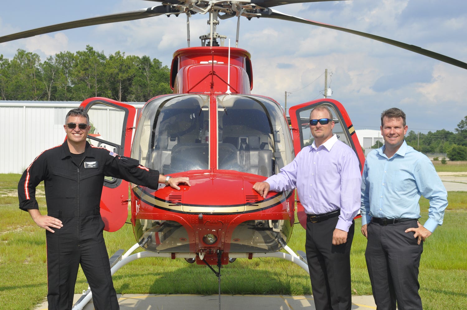 The Santa Rosa County board of commissioners Thursday approved a measure allowing Med-Trans Corporation, the avionics side of Lifeguard Ambulance Service, to operate emergency air ambulance transportation services. Pictured left to right, Brandon Stites, lead pilot, Jason Kimbrell, senior leader Lifeguard Ambulance Service, and Mark Womack, regional avionics manager for Med-Trans. Womack said Med-Trans choppers are night vision capable. “It’s an absolutely essential tool,” he said. Womack said schools will be able to visit Peter Prince Airport and see the helicopter. Stites said this chopper is temporarily operating until the arrival of the Bell 407GX model in two weeks. At that time, Womack said there will be a public presentation.