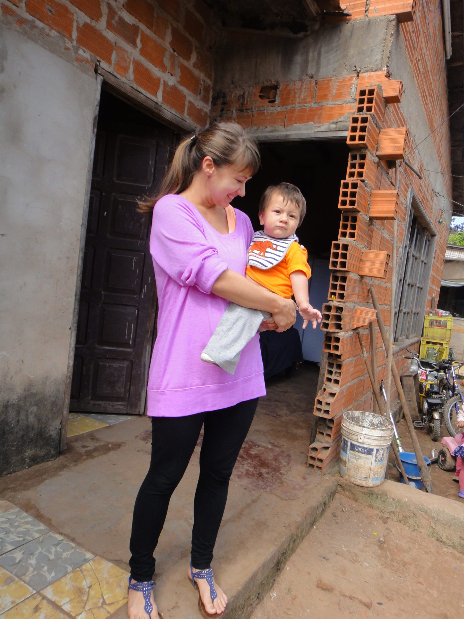 I was so thankful we were blessed with access to the surgery our son needed, and my heart broke for moms without this option. I applied immediately to CHP and was accepted this spring, the same day one-year-old Santi arrived in Canada. Santi is a child I was intended to help. I started praying for him and continued to pray as his surgery was delayed by complications. This June, with his surgery finally complete, I flew to Canada to meet him. Santi—under 20 pounds at 14 months old—wasn’t shy at all. The tip of a scar peeking above his tiny t-shirt was the only indication he’d just had surgery. He snuggled in my lap for part of the long flight and we discussed barnyard animals in the in-flight magazine: Cluck! Moo! Quack! For this we didn’t need a translator. A welcome party of church friends and extended family waited alongside the rutted dirt road in Santa Cruz.